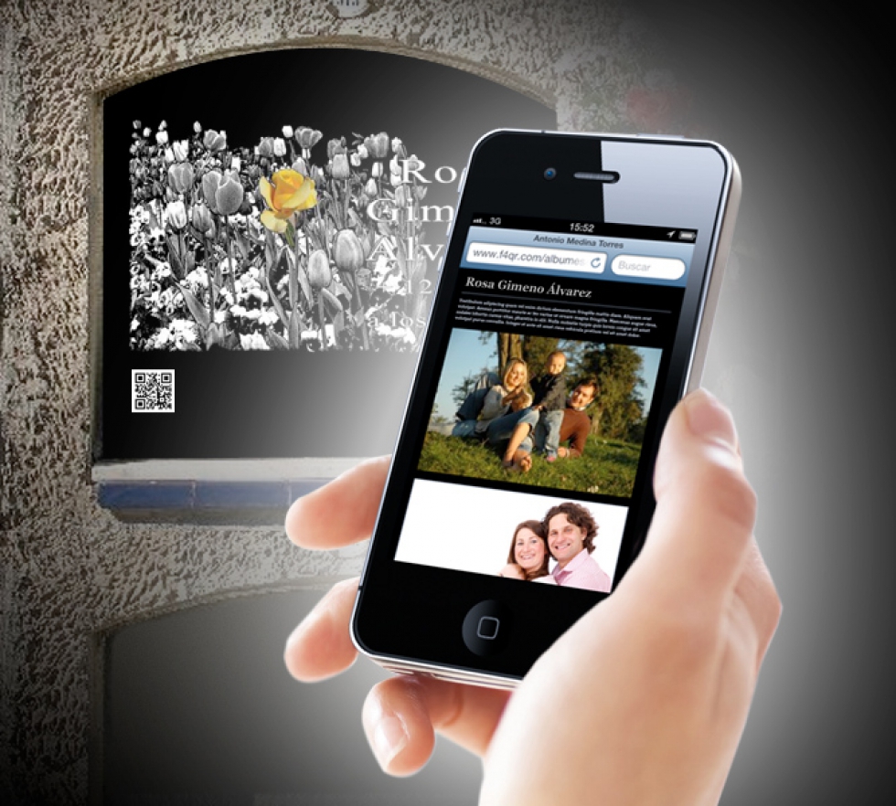 The operation is very simple, we place the phone in front of the code for read it between an application. Then it opens directly to a personalized system in which you can see photos, videos and texts of your loved one.